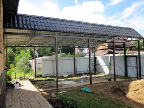 На готовые опоры привариваем металлические лаги, на которые впоследствии монтируется профлист.